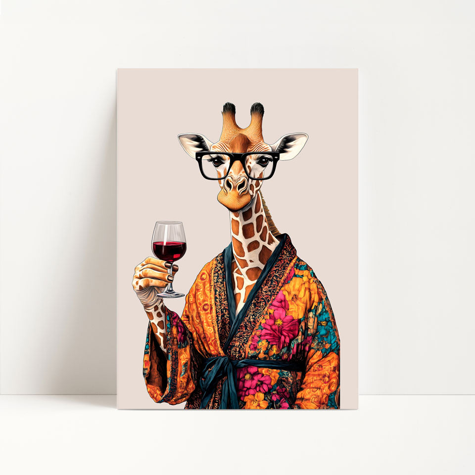 Step into a world where art meets whimsy with our Giraffe Drinking Wine Print. This Giraffe Maximalist print is not your typical wall art – it's a playful, funny poster that will bring a smile to your face every time you see it. Perfect for wine lovers, this kitchen print is a delightful addition to any dining room or cloakroom. Whether you're looking for a housewarming gift or simply want to add a touch of Maximalist decor to your home, this trendy print is sure to impress. Elevate your kitchen decor with this unique piece that adds character and charm to any space. Bring a sense of joy and humour to your walls with this funny wall art that will surely spark conversations among guests.