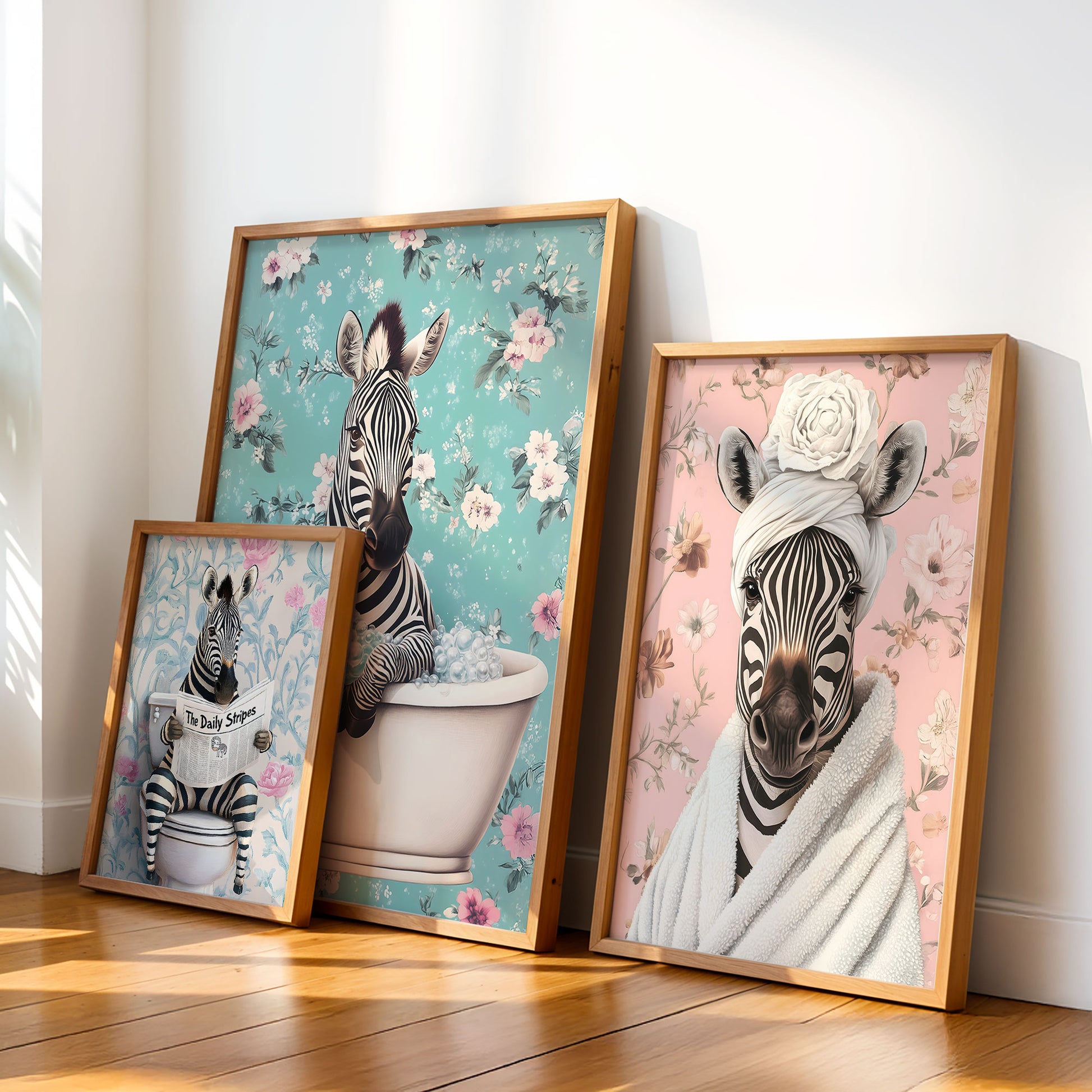 Set of 3 Funny Zebra Bathroom Wall Art Prints